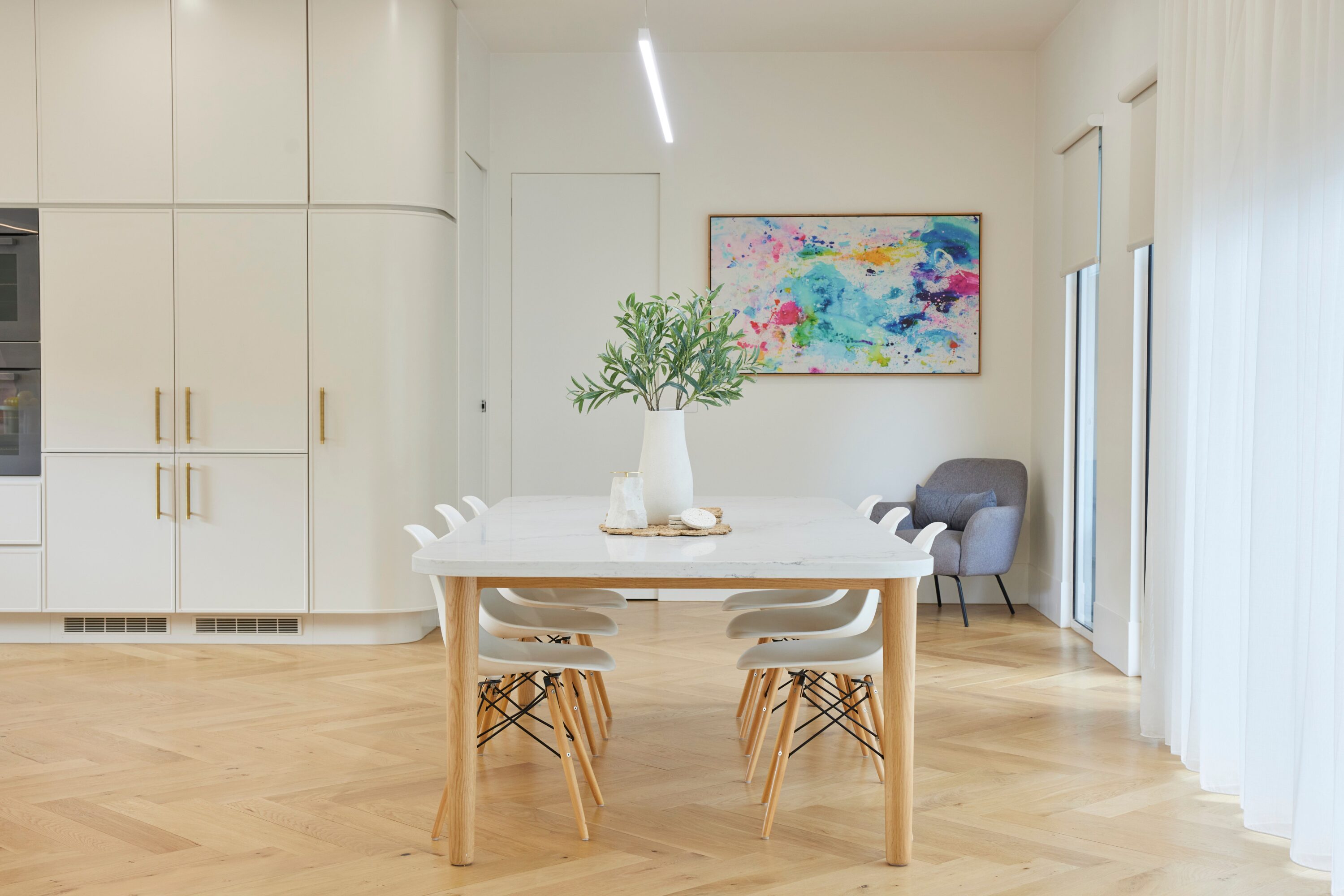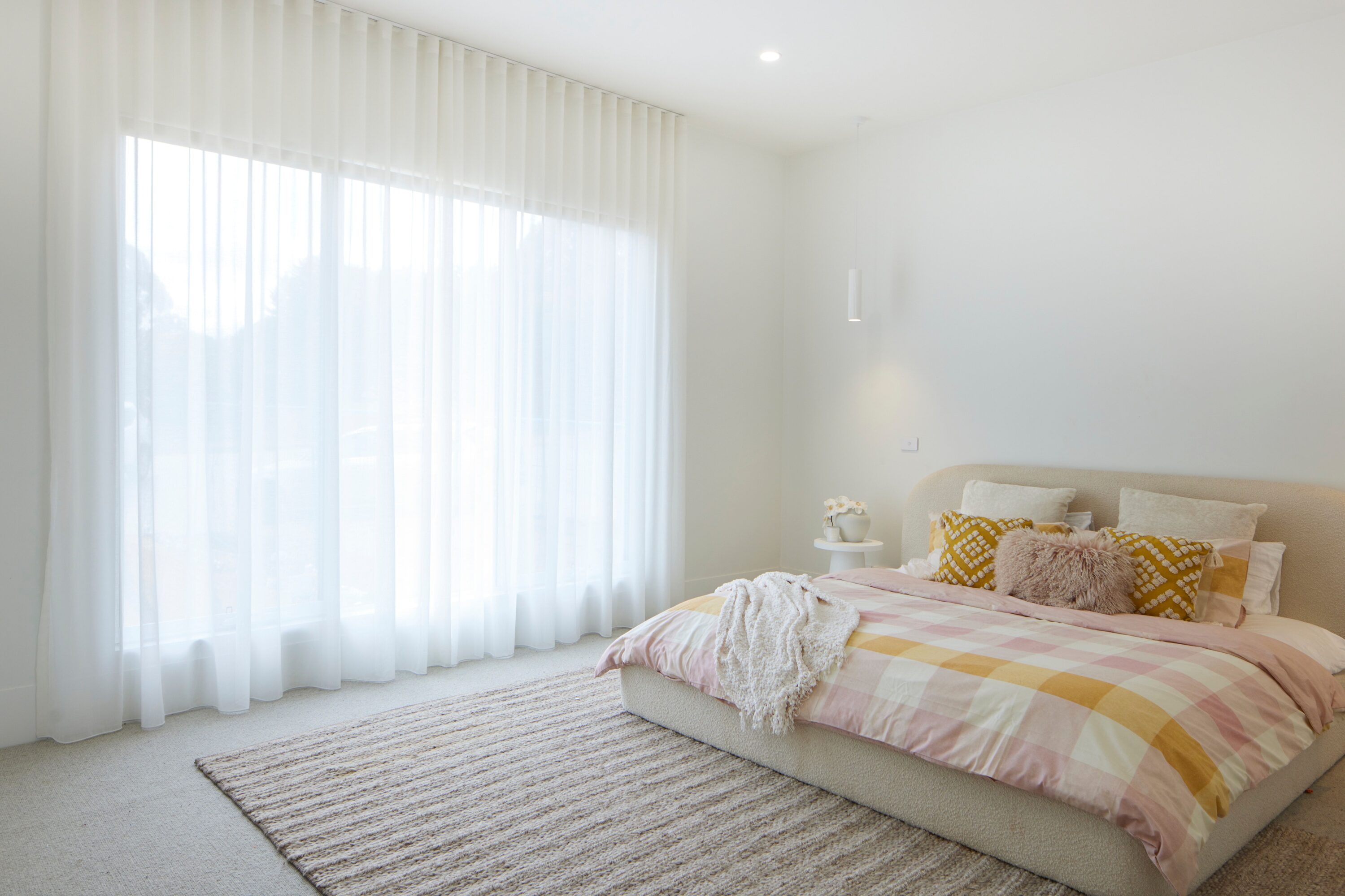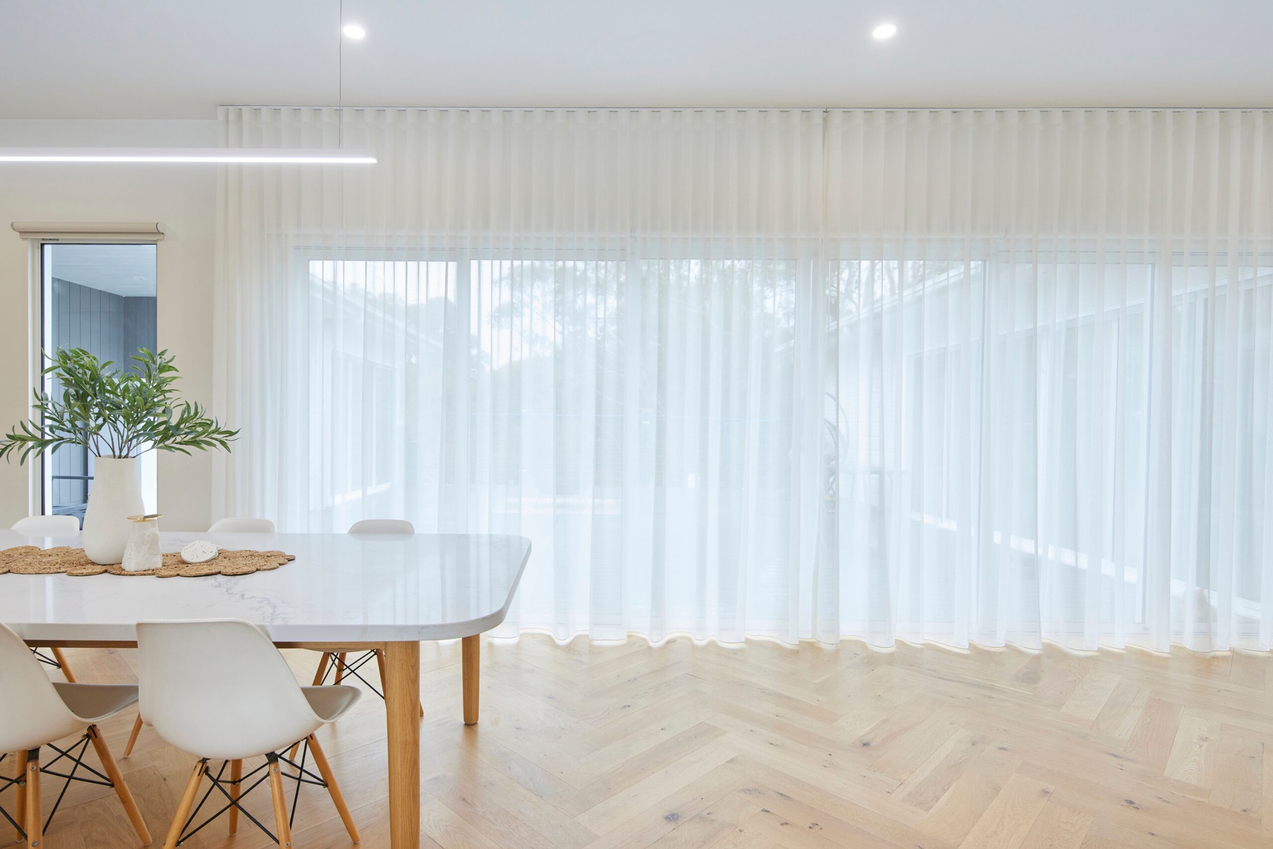 I went with Blockout Blinds because we love a nice dark room for sleep especially with the little ones and getting them to sleep a little longer in the mornings! The Sheers we chose for the areas we wanted to soften and make a little more lux; Our main bedroom and walk in robes. Lounge and kitchen open living area. They changed everything!!