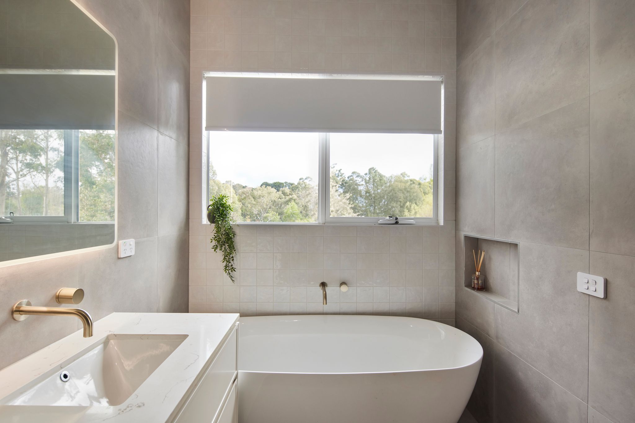 My bedroom. It’s the place I go to feel relaxed as I’ve set it up with neutral tones, throw blankets and included Sheers over the Blockout Blinds to make it feel more soft and relaxing