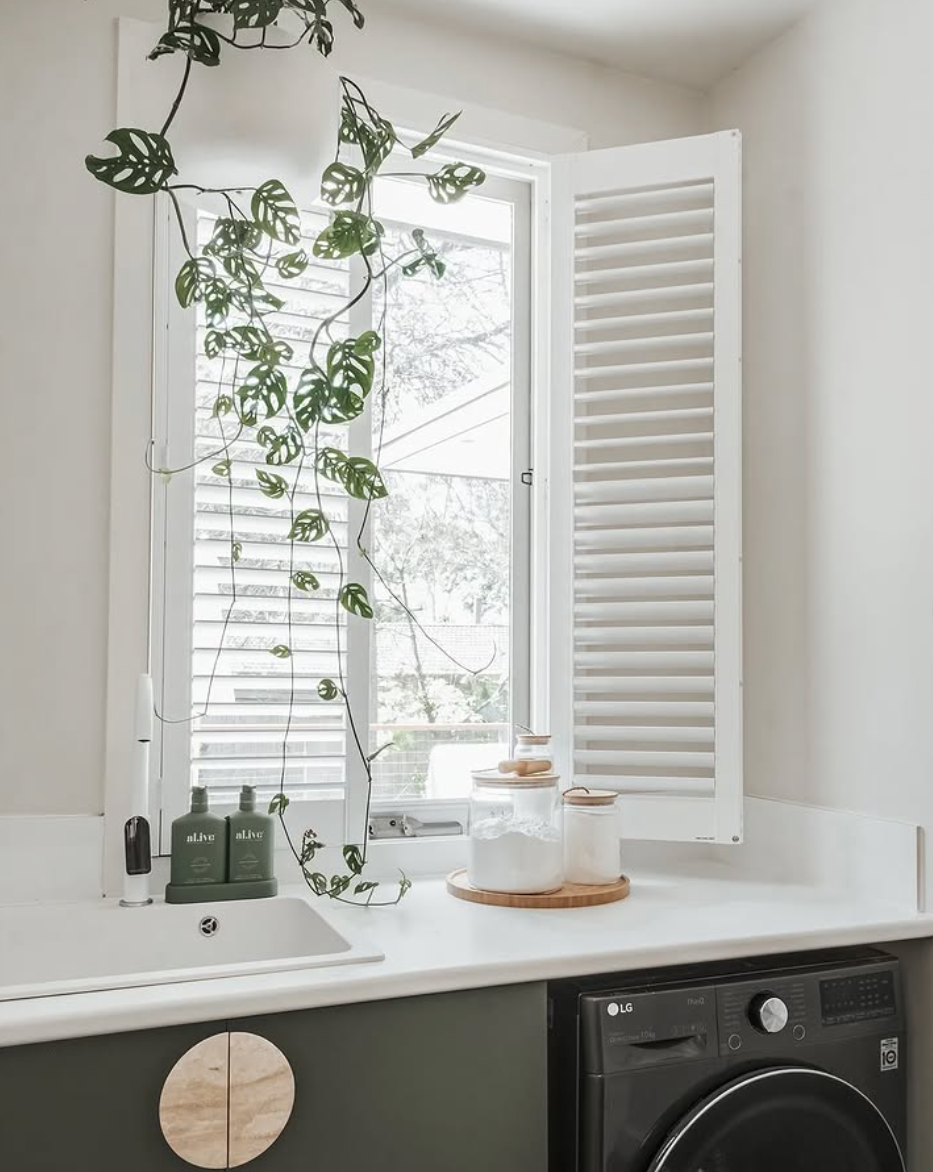 The Plantation Shutters in the laundry bring a fresh, classic touch, while the Roller Blinds paired with the Sheer Curtains create that layered look I love for our bedrooms.