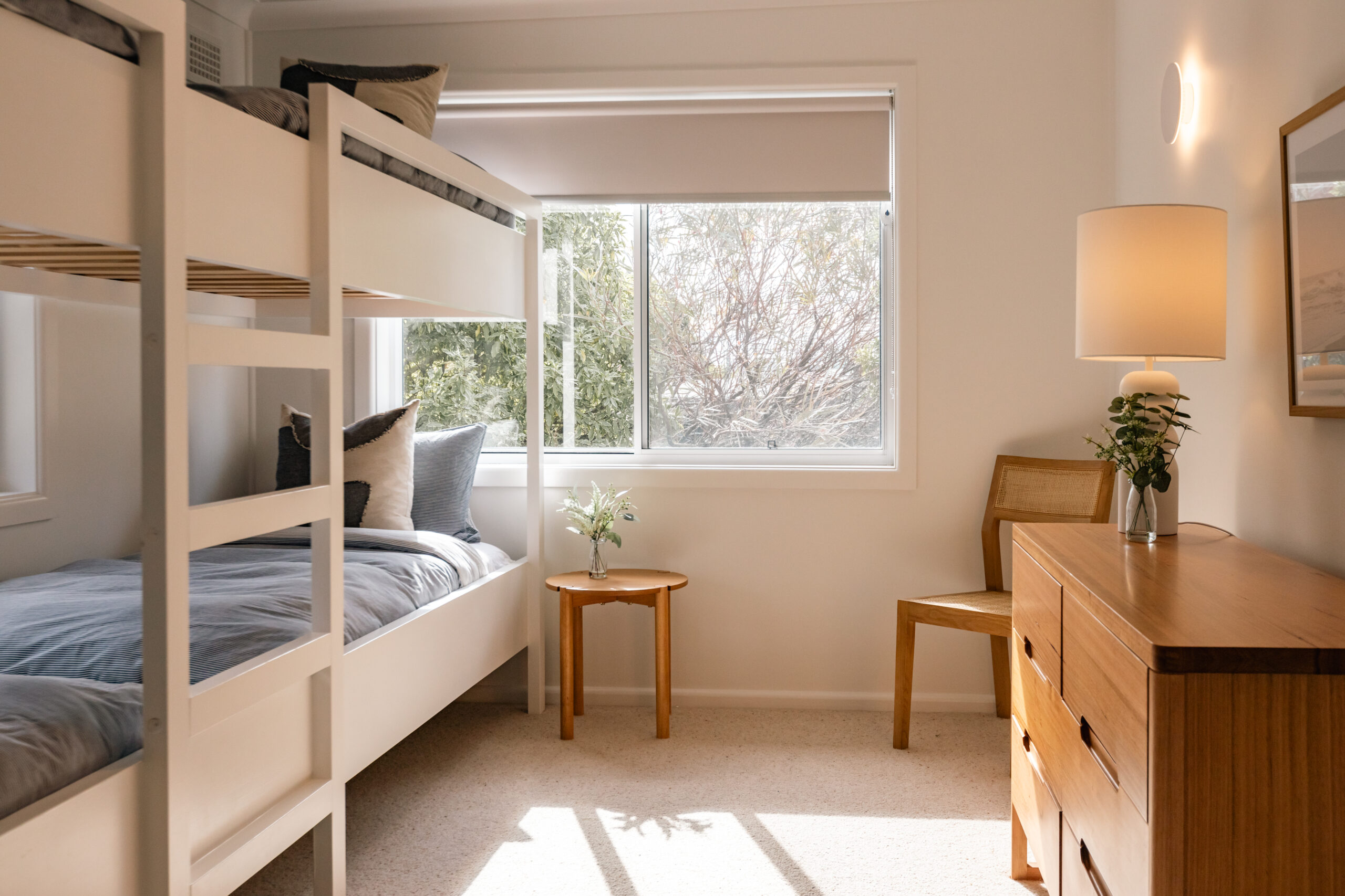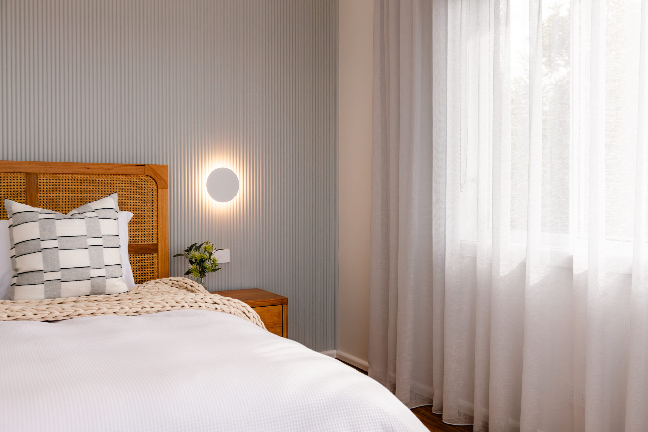 The primary bedroom is our favourite, as it perfectly captures the balance of modern design and coastal comfort, making it a welcoming space for guests.