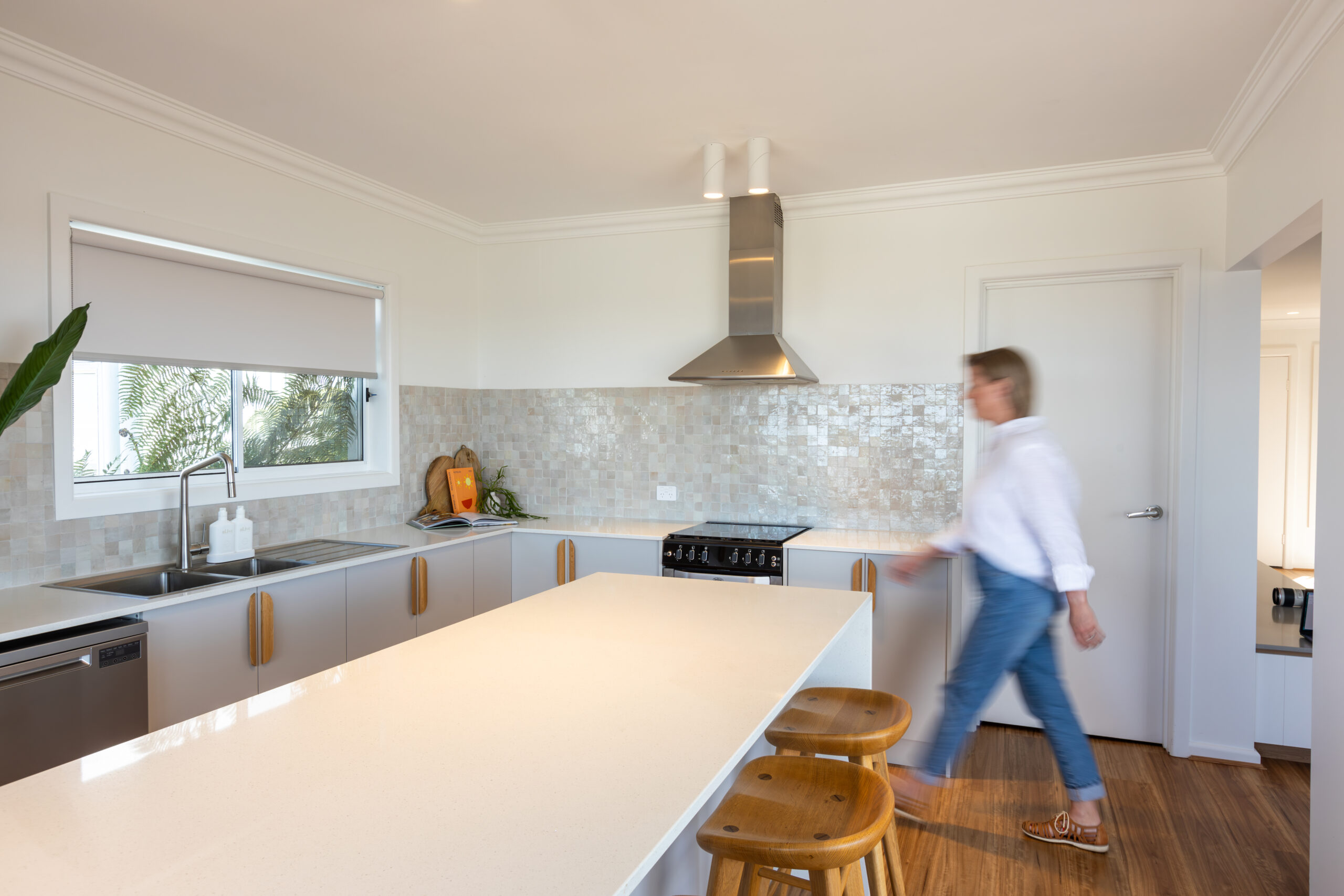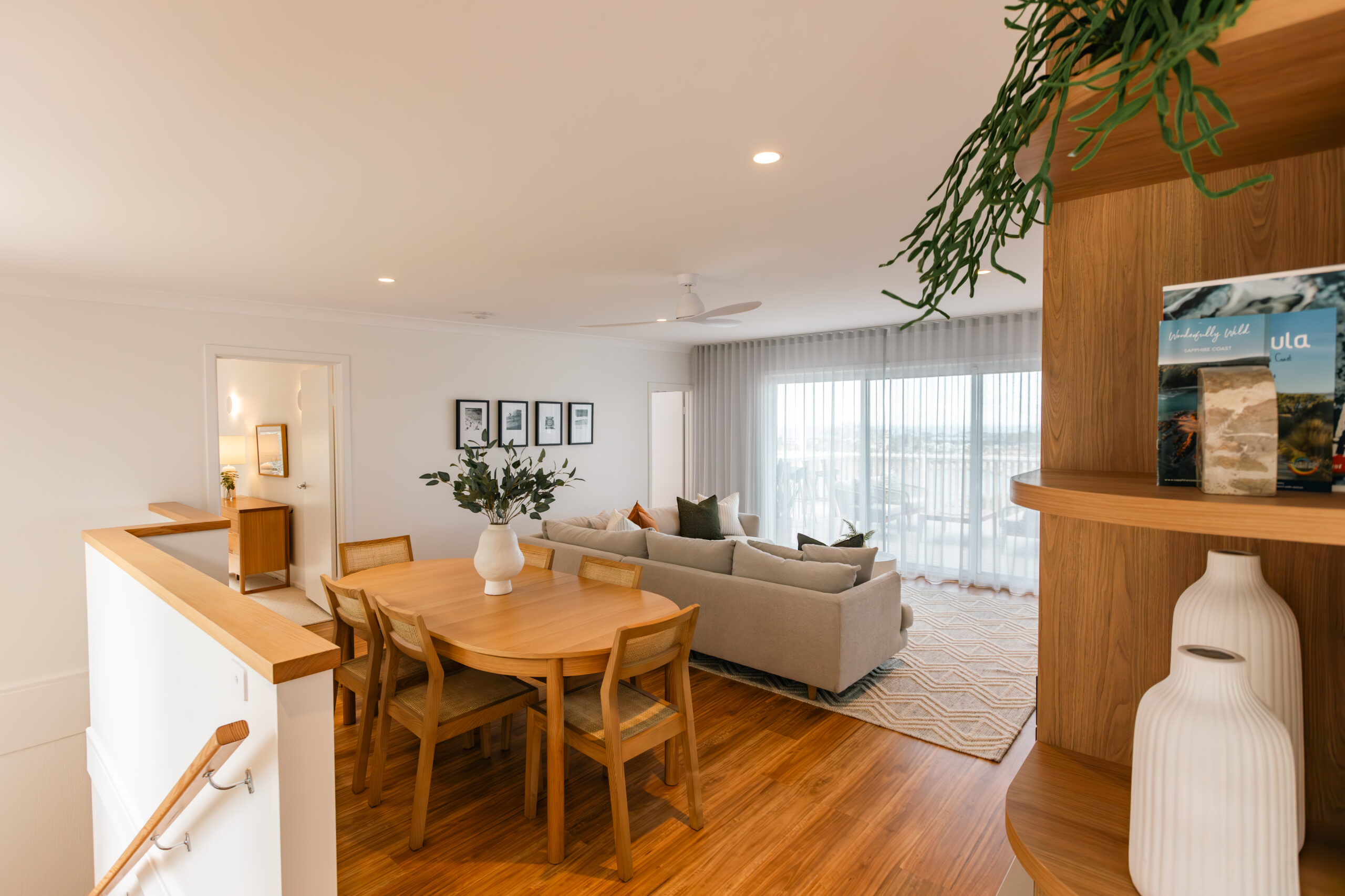 We contacted dollar curtains + blinds early in the process to ensure that the window furnishings would align with the overall design from the beginning. In fact, Brad from our local dc+b Merimbula store met us on site the day our clients were handed the keys to the property.