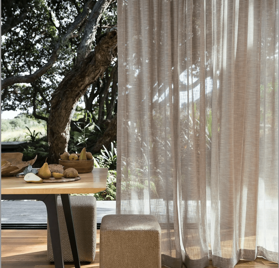 By lining patterned Sheer textiles they become a main Drape rather than just a Sheer. This lighter look is especially popular in warm, coastal climates like the upper North Island of New Zealand, or in New South Wales, Queensland, and Western Australia.