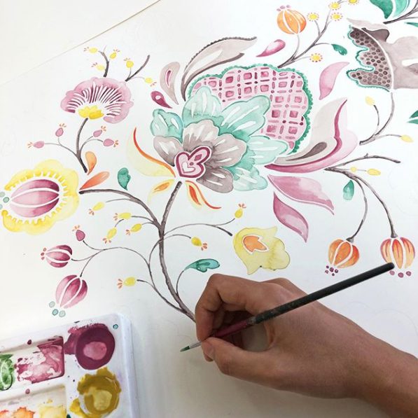 Each day can be really different, depending on where in the range process we are. Sometimes our designers are admin heavy, where they are stuck behind their computers chasing orders for new ranges, problem-solving with suppliers, or working on admin to make sure timelines are adhered to. Other times — and I think this is more in line with the public perception – they are hand drawing and painting new designs, working on new colour palettes, and creating inspirational references for new ranges. Then some days, I’ll walk in and the studio is empty, only to find out they are on a photoshoot, making sure our product is photographed to help provide a starting reference for our customers – ideally inspiring them and their creative process.