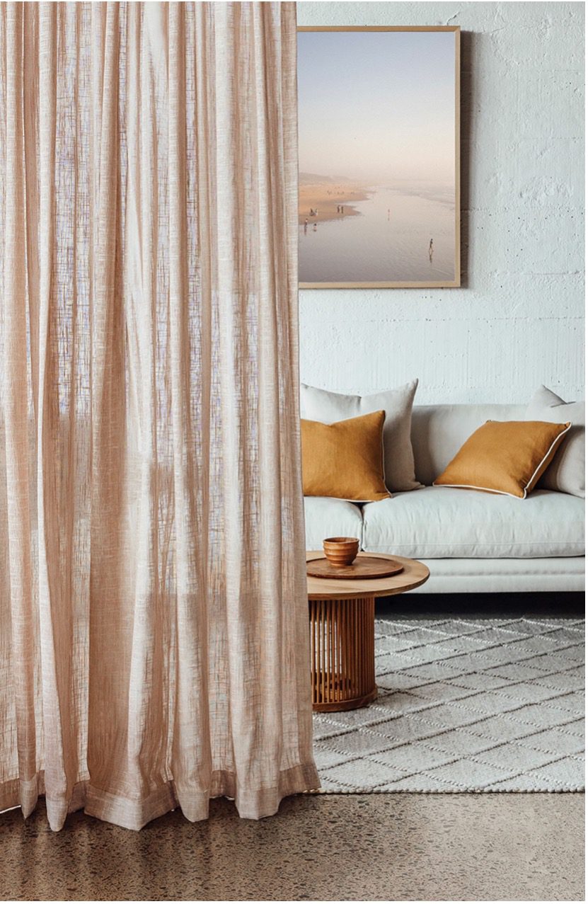With Matt as a builder and my sister as a designer, our renovation of an outdated weatherboard home went smoothly. Transforming it into my favourite Scandi-Coastal style, we added Sheer Curtains and Roller Blinds for a soft, calming ambience.