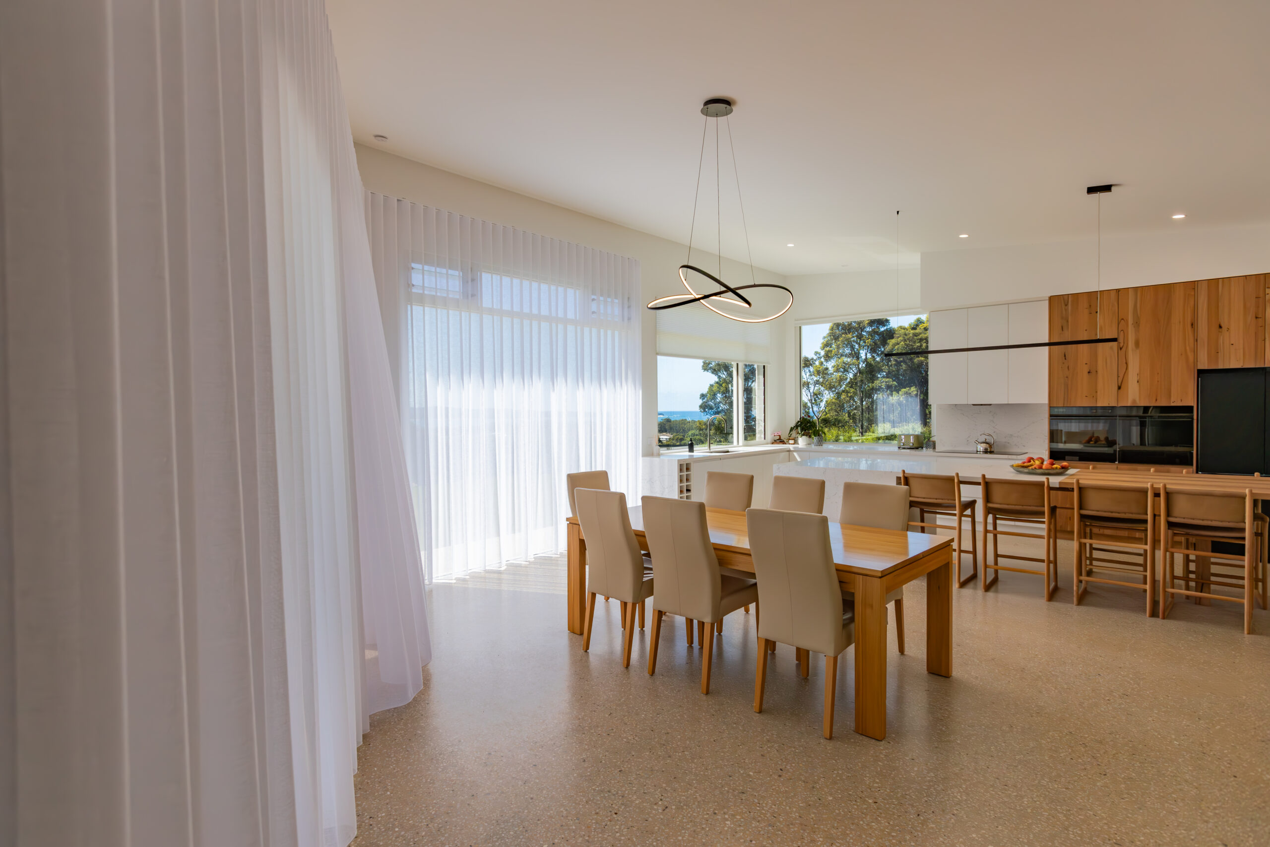 Greenform Construction’s recent Bass Coast rebuild features our Automated Sheer Curtains and Roller Blinds, seamlessly blending modern design with smart convenience.