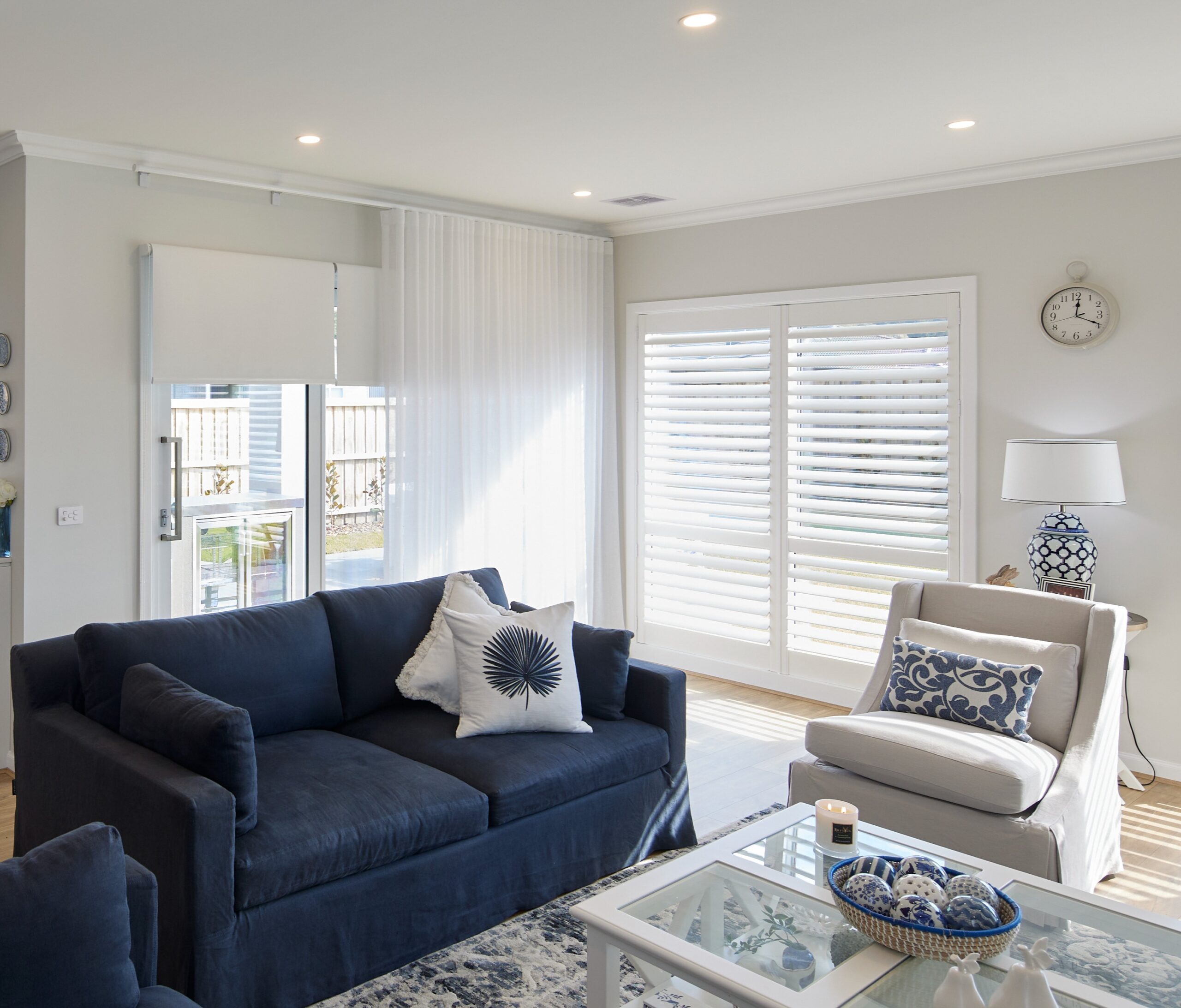 After holidaying in the USA and visiting The Hamptons, Elle and Troy fell in love with the iconic style the area is famous for. To bring a similar look into their South Gippsland home, they chose our Roman Blinds, Sheer Curtains, Shutters, and Roller Blinds.
