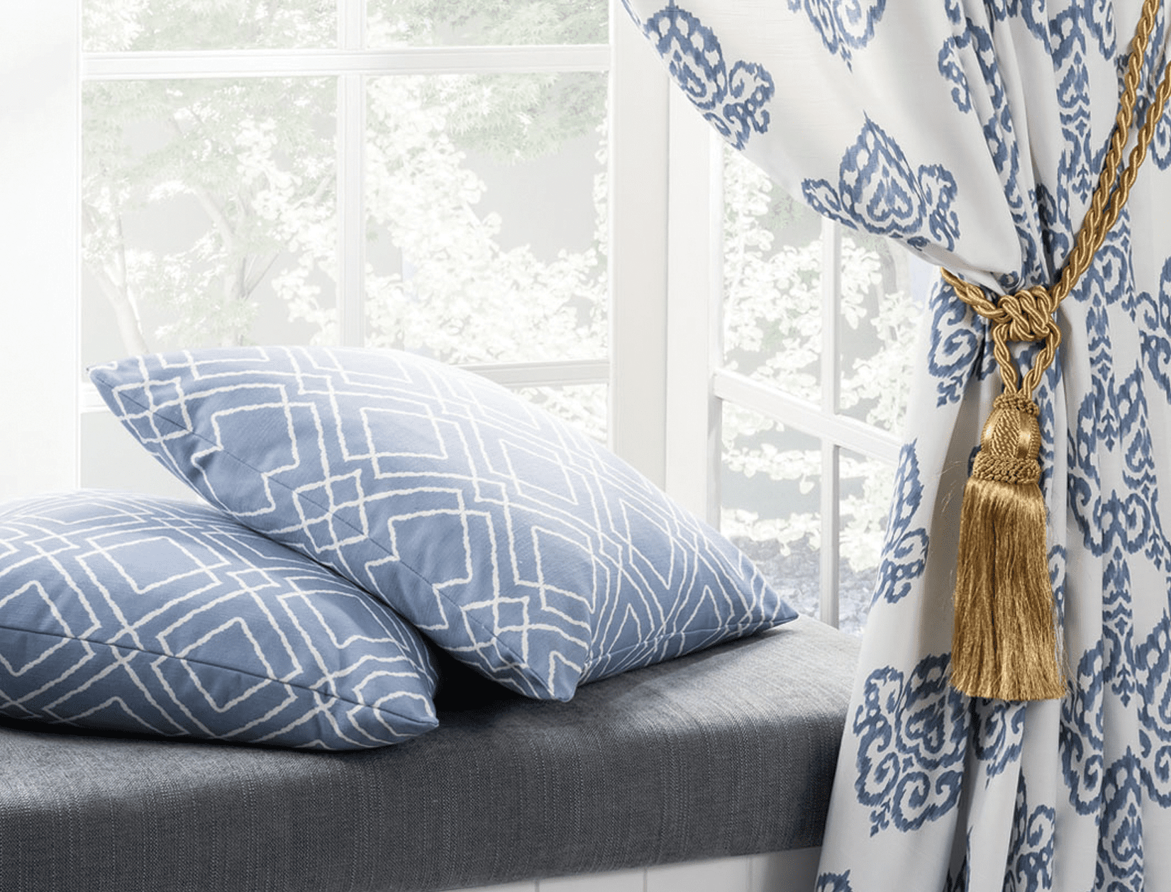A few well selected window furnishing accessories such as Cushions and Tiebacks can add colour and style to any space. Go for a bold colour palette and striking furnishings to energise a small space or subdued neutrals to create calm and warmth.