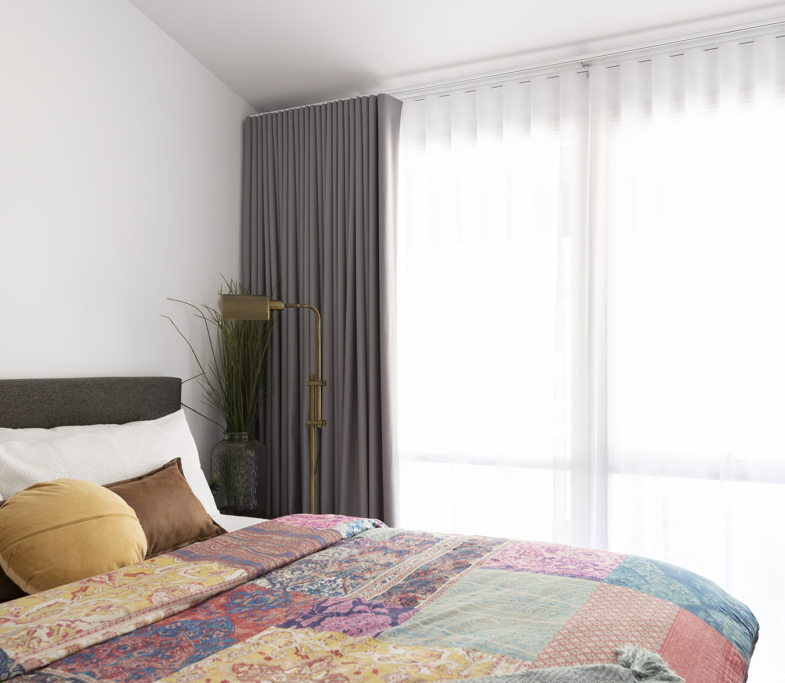 Open the Blockout Curtains during the day and keep the Sheer Curtains closed for diffused light and daytime privacy. Close the Blockout Curtains in the evening for complete light control, privacy, noise reduction and thermal insulation. You have the choice of layering one or the other to the front or back.