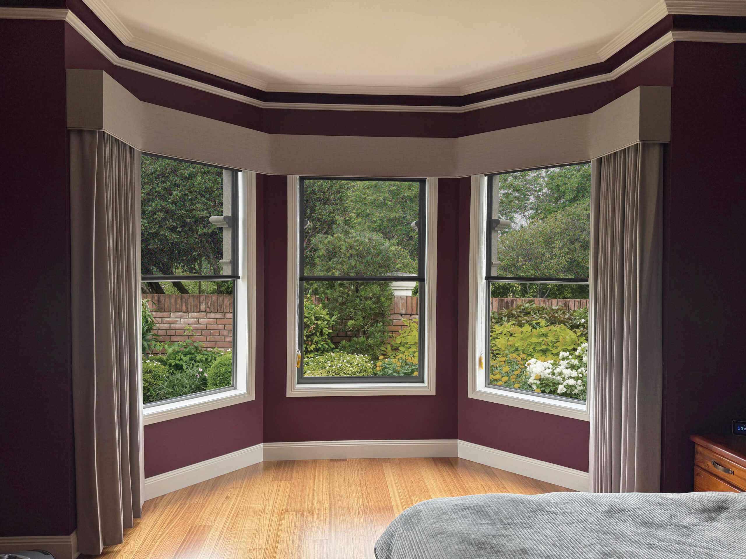 Corner window? No problem! Our Angled Pelmets have been developed and designed especially for corner or bay windows. All our Pelmets can be recessed or fitted to the architrave.