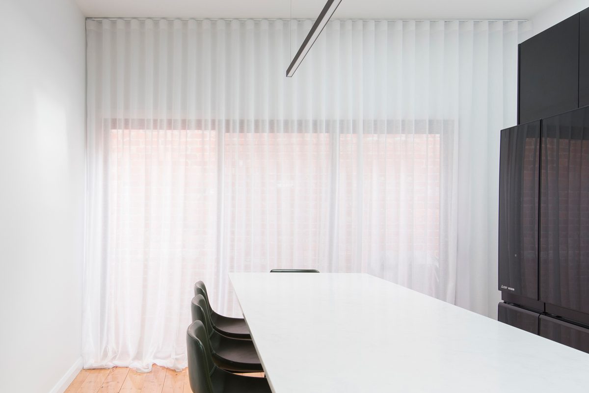 It’s also possible to design a double track of Wave Fold Curtains, where a Sheer and Blockout fabric are used on the same window. These are controlled separately, allowing you to have diffused light and privacy during the day and ultimate block out at night.