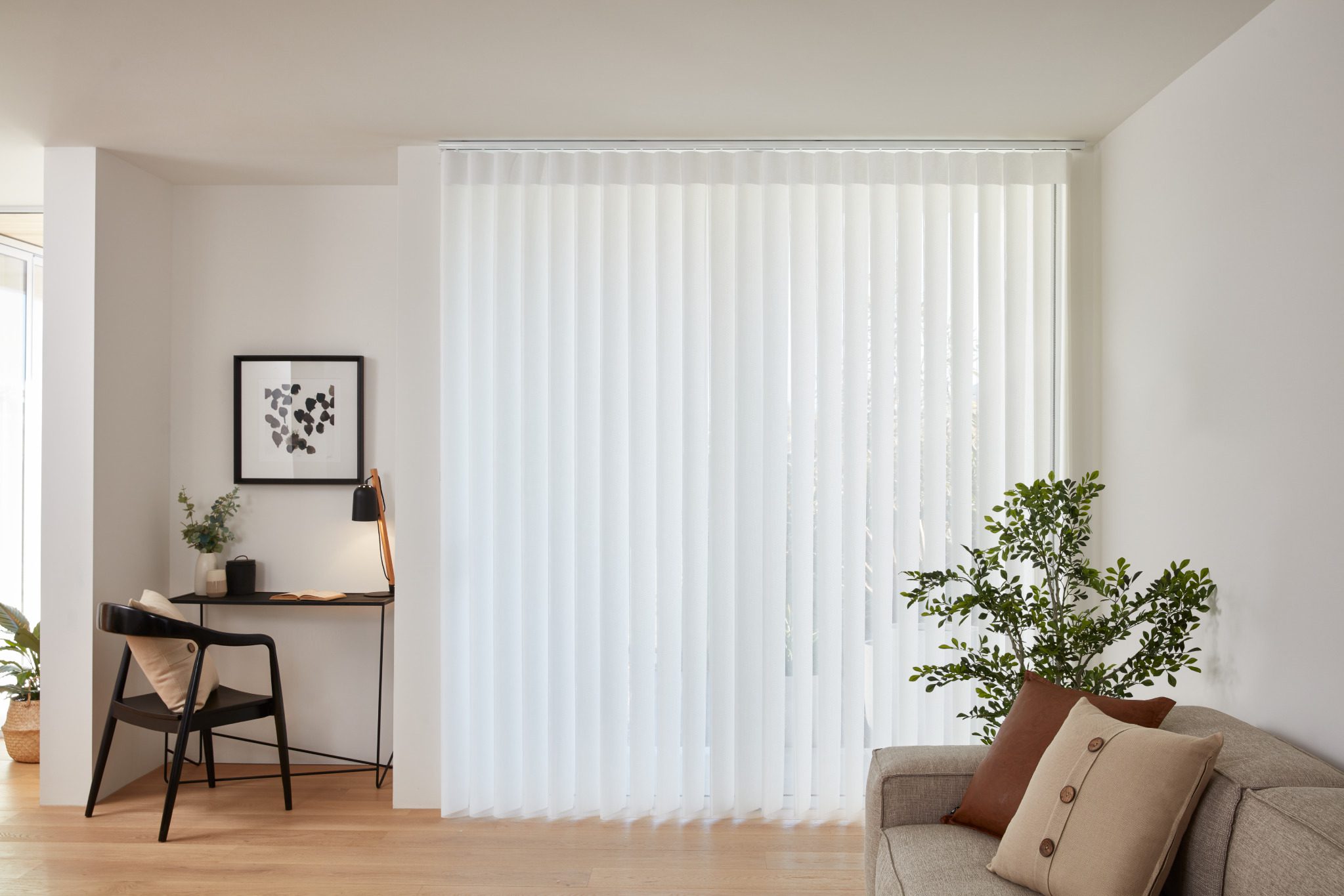 With their patented design, our Australian Made Veri Shades allow you to switch seamlessly from translucent to opaque fabric with a simple turn of the wand, providing effortless control over light and privacy. The soft fabric drapes elegantly, is easy to maintain, and adds a refined touch to any room.